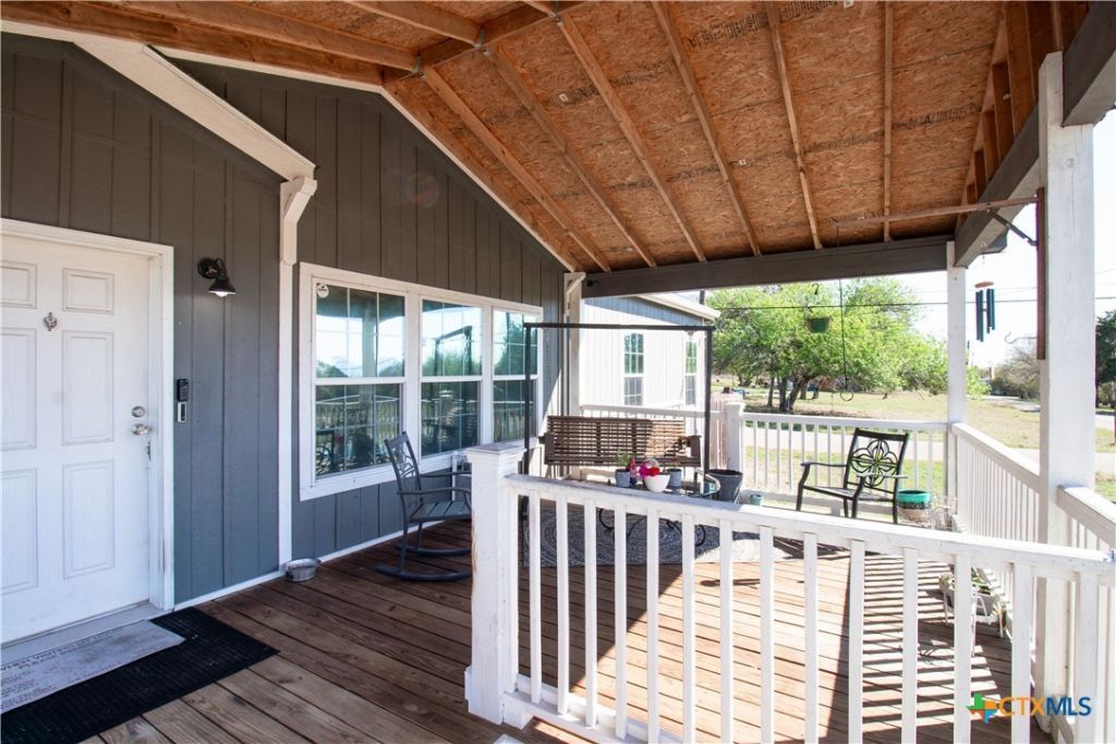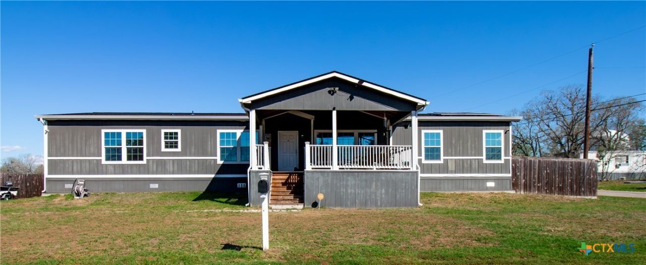 Efficiency, space, and standout features in Cuero! This 2018 4BR/2BA manufactured home offers the perfect blend of comfort and smart upgrades. Enjoy a large covered front porch deck with classic white picket railing, plus a spacious screened-in back patio and deck?ideal for relaxing or entertaining. Inside, youll find recessed lighting, crown molding, and a mix of carpet and laminate flooring, along with a flexible 2nd living area for added space. The oversized primary suite features a tray ceiling and a unique hidden study nook behind sliding barn doors. The ensuite bath includes dual single vanities, a deep soaking tub, and a separate walk-in shower. Energy efficiency shines with 36 solar panels, tinted windows, metal roof sheeting, and a new 2024 composition roof, plus a 2018 A/C system. Situated on five lots with a wood privacy fence and an indoor laundry room, this property offers room to live, grow, and enjoy. Move-in ready with upgrades that truly matter?dont miss it!