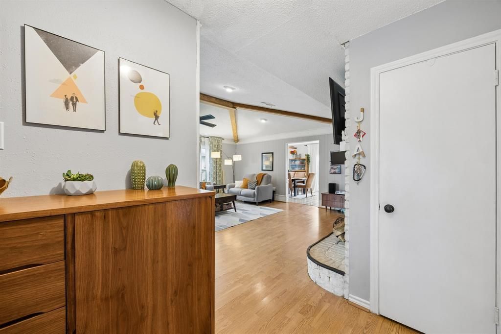 Thoughtfully laid out and full of character, this 3-bedroom, 2-bath home in Garland is set on a cul-de-sac lot and offers inviting spaces, meaningful updates, and everyday functionality.The main living area serves as the heart of the home, featuring custom built-ins, a cozy fireplace, and striking wood-beamed ceilings that bring warmth and character to the space. Just off the living room, the dining area provides a seamless connection for both everyday meals and gatherings.The kitchen has been thoughtfully updated with quartz countertops and modern finishes, including a new double oven, microwave, dishwasher, sink, and garbage disposal, along with an ice maker—creating a highly functional and refreshed cooking space with generous storage and ample prep areas.A dedicated laundry room adds convenience, while two secondary bedrooms and a full bath provide flexibility for guests, family, or a home office setup. Recent improvements to the hall bath include updated flooring, and vanity, enhancing both style and usability. The primary suite features an updated ensuite bath with a walk-in closet, creating a comfortable retreat at the end of the day. Additional major updates include a new HVAC system, water heater (2019), and windows (2019), along with pool removal for improved yard usability.Step out back to find a good-sized grassy yard offering space to relax, play, or entertain. With a layout that balances openness and defined spaces, this home delivers both practicality and timeless appeal, all while being conveniently located near local shopping, dining, and everyday amenities with easy access to major roadways for commuting.